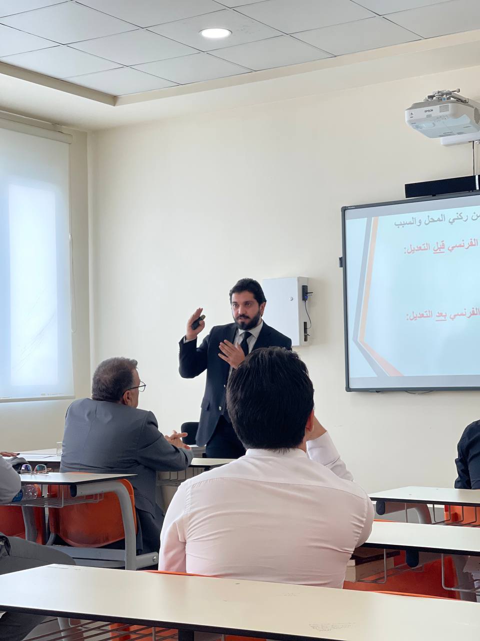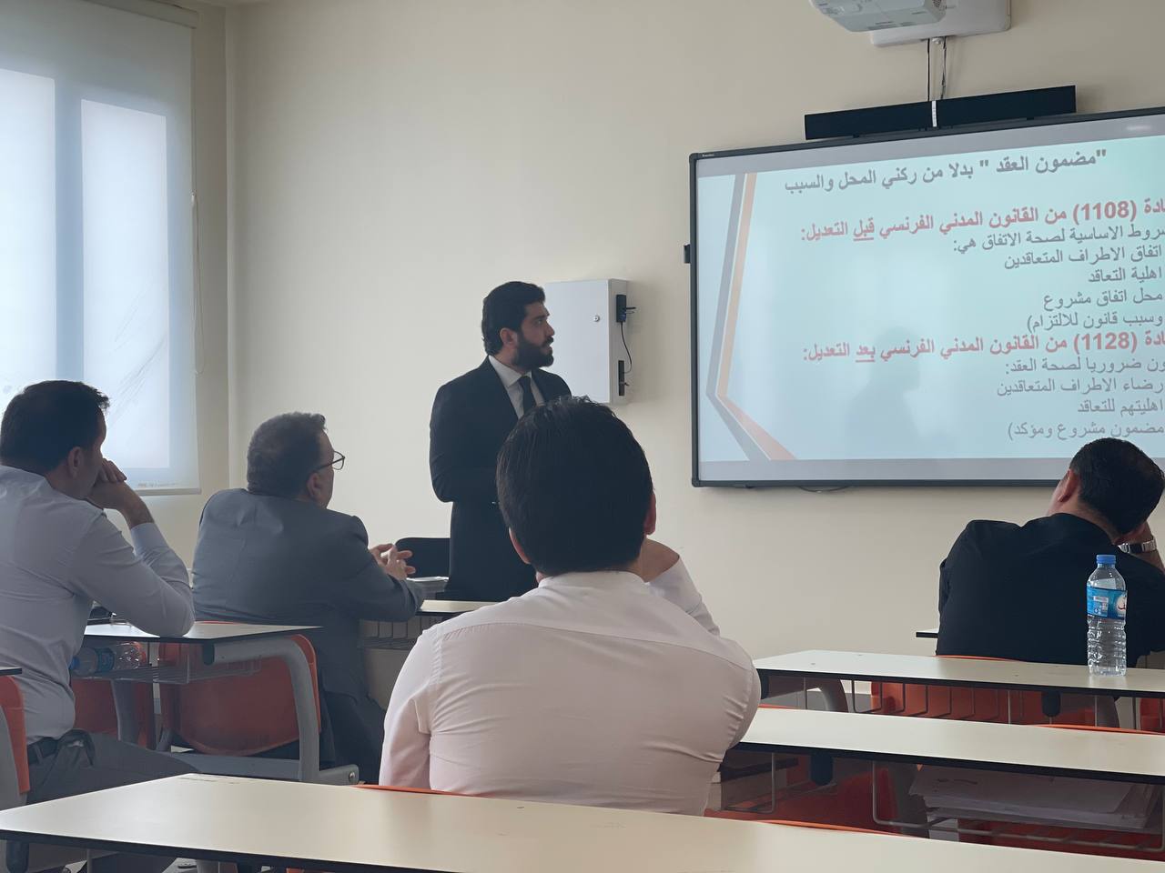 In continuation of the educational activities organized by the Faculty of Law at Tishk International University, a seminar titled “The Content of the Contract in Light of the Amendments to the French Civil Law” was conducted by Mr. Xaled Xursheed, Assistant Lecturer at the Faculty of Law, on October 4th, 2023. The event took place in the Main Building, hall 443, and was graced by the presence of the Dean of the Faculty of Law, Asst. Prof. Dr. Hussien Balisani, Head of Department Dr. Sabah Qasim, and other staff members. During the seminar, Mr. Xaled Xursheed delved into the fundamental elements of contracts within the French Civil Law post its 2016 amendments and explored the implications of these contracts.