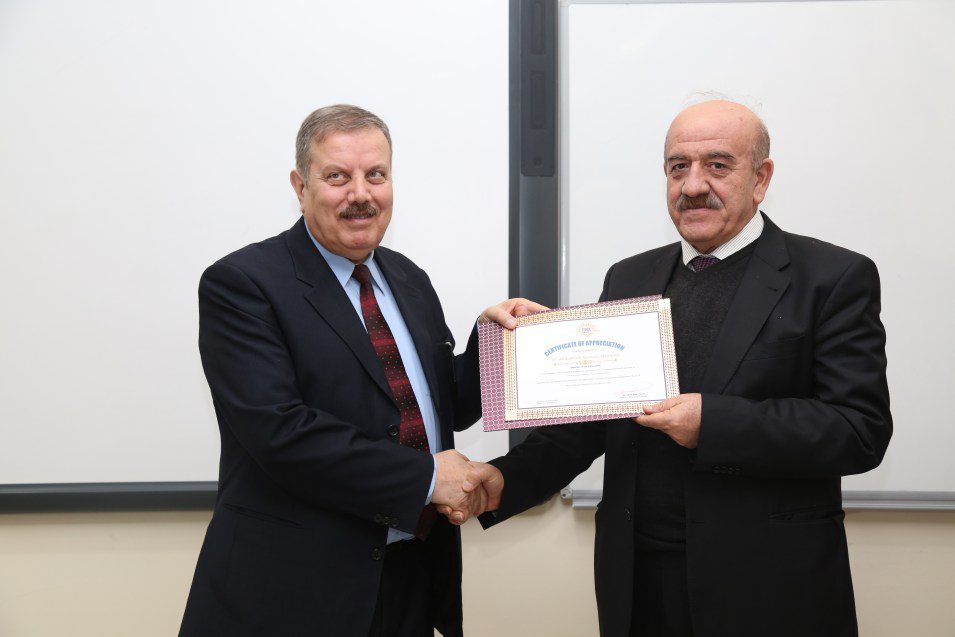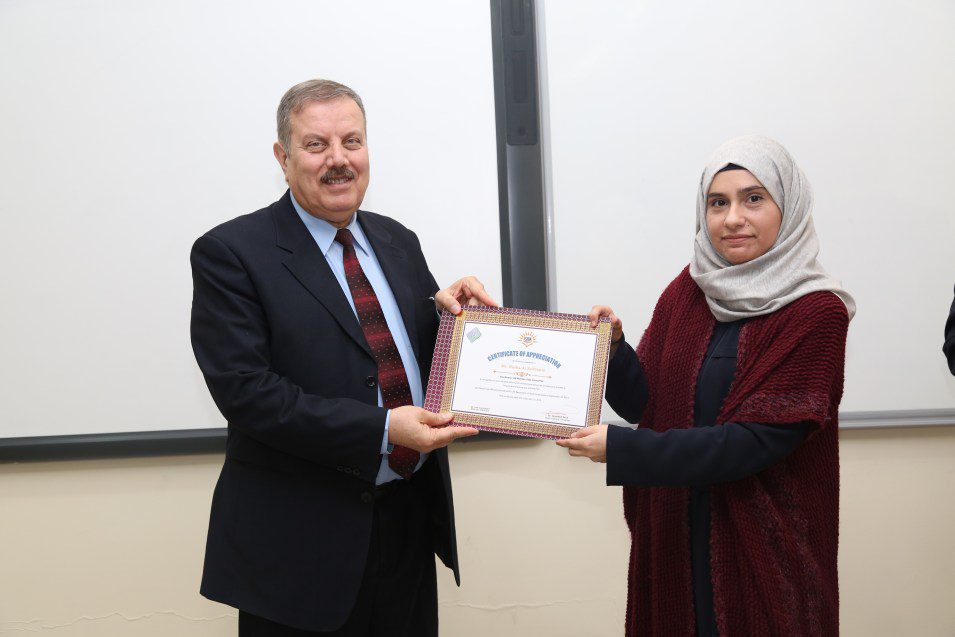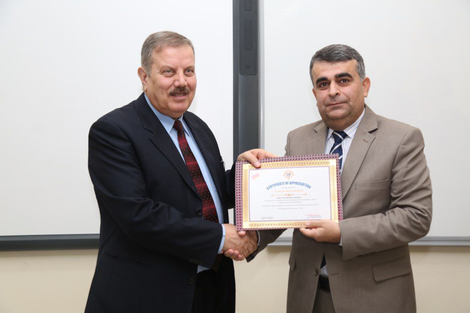 The celebration ceremony started with a speech performed by the Chairman of the Board of Trustee and acting President of the University Dr. Idris Hadi Salih. Then a short video about the Department’s achievement and Activities was displayed. Later on, a brief presentation about the “Benefits of Accreditation” was provided by the Coordinator of Accreditation & ISO Ms. Rasha Alkabbanie. Then the Dean of Law Department Dr. Adnan Abdullah talked about the Procedure and the Steps of the Academic Accreditation done at his department.
