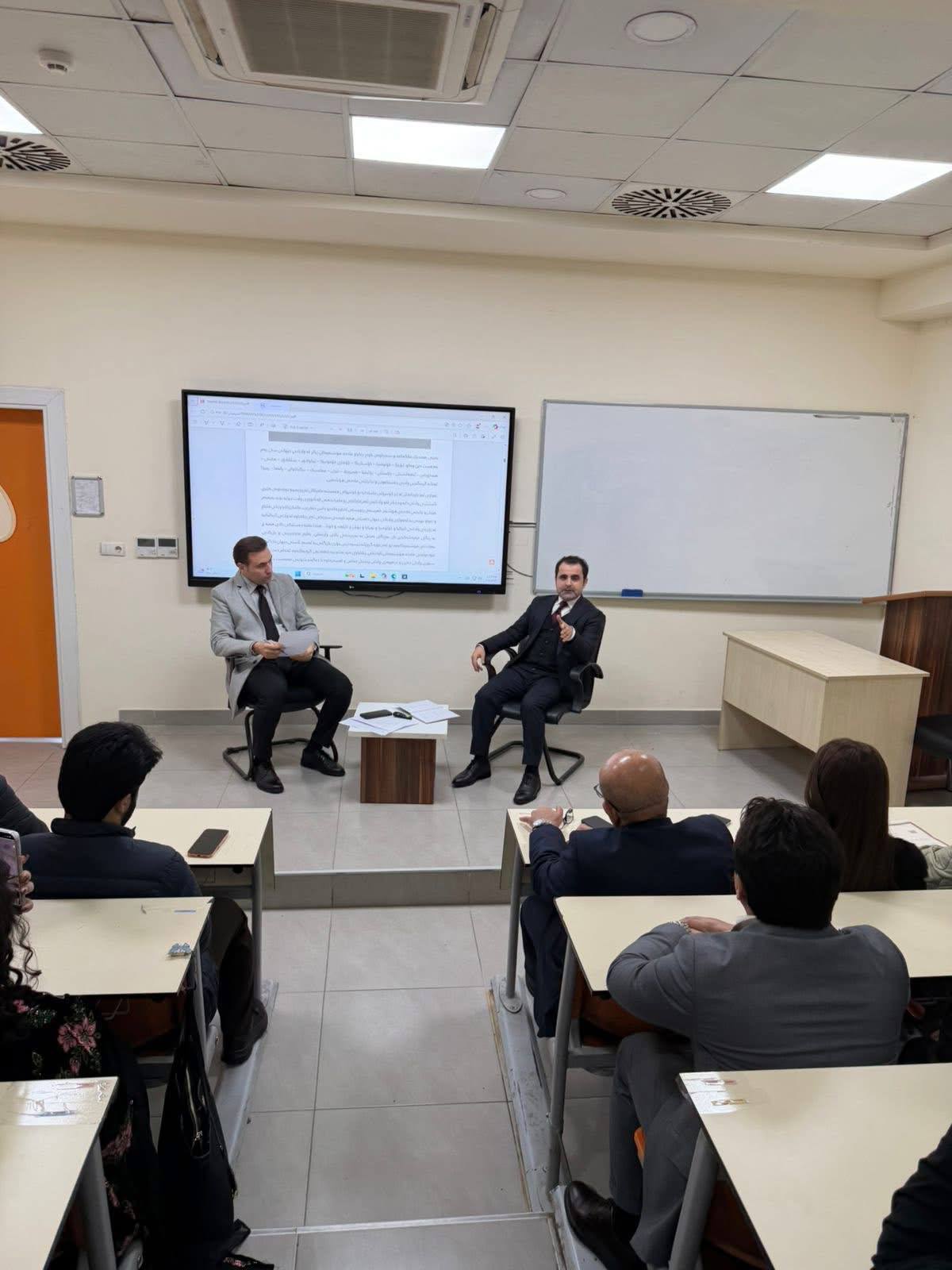 Seminar: Combating Drugs in the Kurdistan Region In continuation of scientific activities, on 1 February 2025, the Faculty of Law organized an academic seminar entitled “Combating Drugs in the Kurdistan Region: The Legal Framework between Criminal Deterrence, Rehabilitative Treatment, and Practical Field Challenges.” The seminar was delivered by Mr. Mohammad Hamid Abbas, an officer at the Directorate of Drug Control under the General Directorate of Asayish in Erbil. The session was moderated by Dr. Mohammad Abdulkarim Sharif and was attended by a distinguished group of faculty members and students of the faculty. The seminar provided an in-depth analysis of the criminal [...]