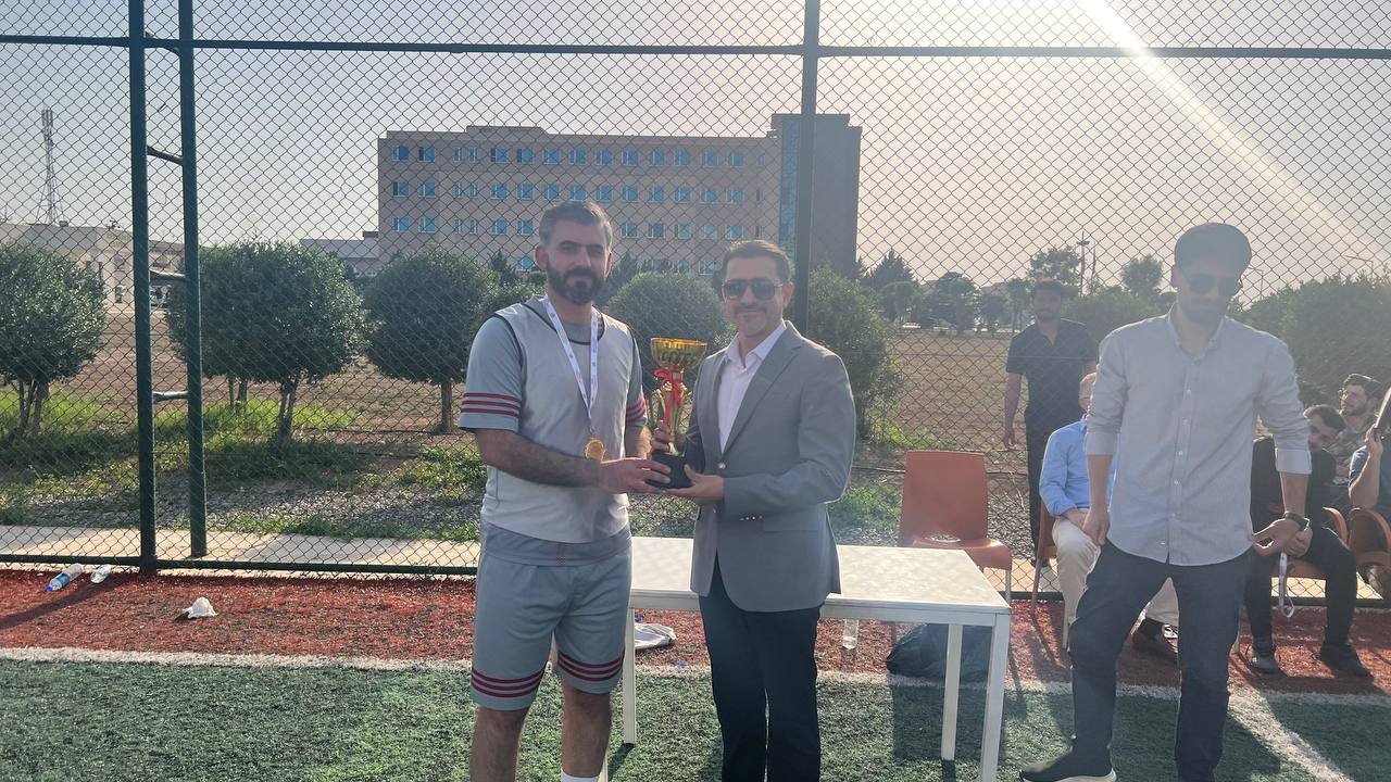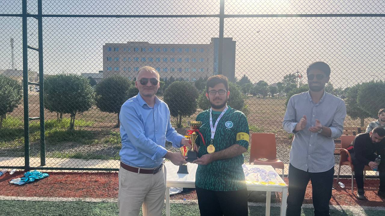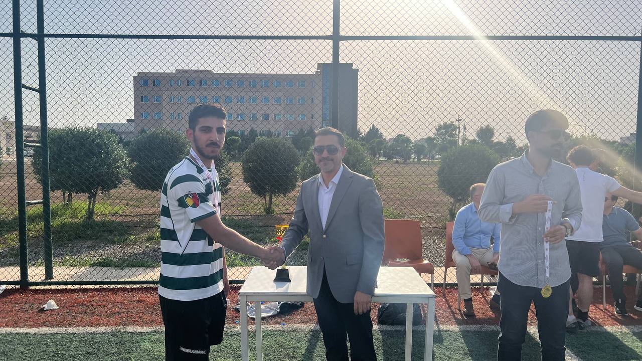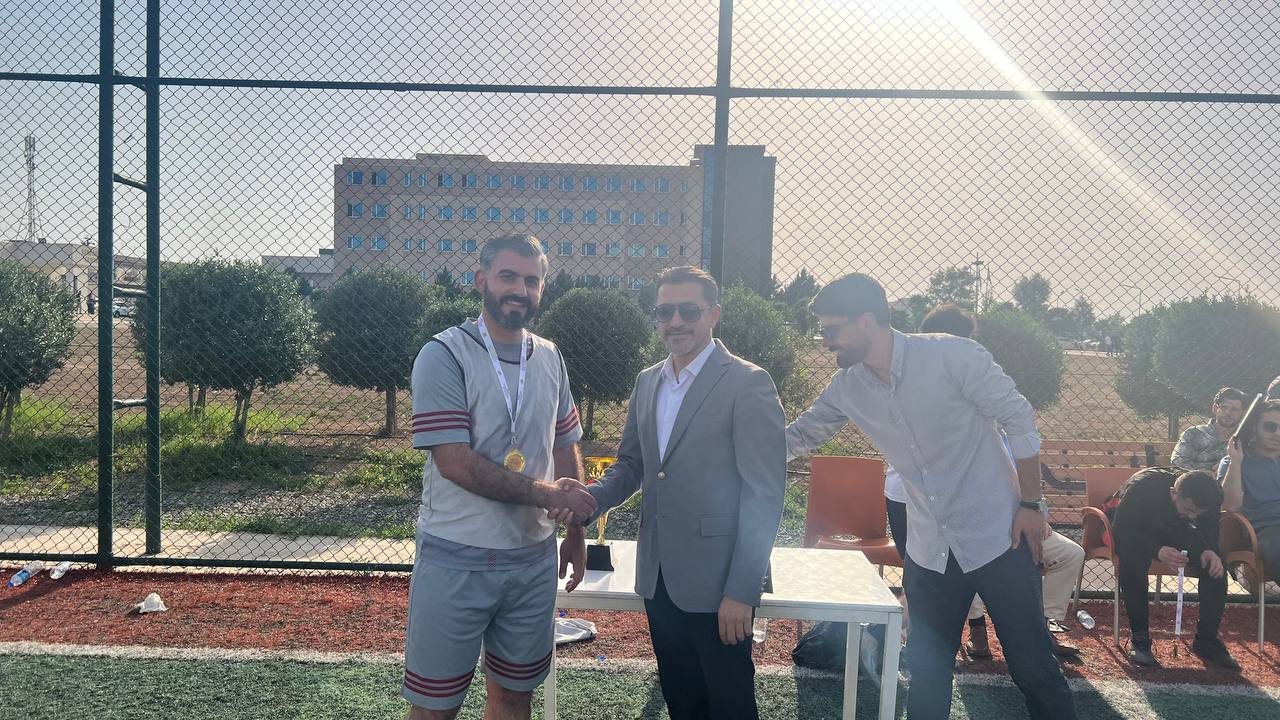 The final match was held at the university’s main stadium at 3:00 PM between fourth and fifth-year students. The fifth-year students won the tournament, scoring three goals. The Dean of the Faculty of Law, Dr. Sabah Qasim, presented the winning team with the first-place prize. Additional prizes were also awarded to the best goalkeeper.