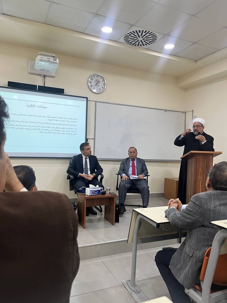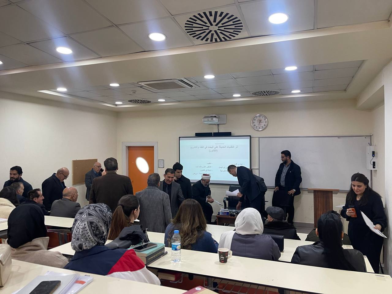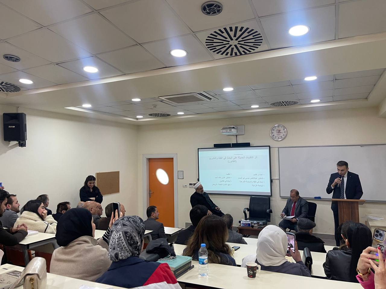 The workshop, moderated by Dr. Muhammed Abdul Kareem, a lecturer at the Faculty of Law, featured two sessions. The first, on “The Influence of Modern Technologies on Research in Jurisprudence and Legislation,” was presented by Dr. Ghazi Khaled Ahmed Abu Aarabi, a Professor of Private Law at the College of Law, United Arab Emirates University. The second session, titled “Artificial Intelligence and Legal Challenges,” was presented by Dr. Abdulnasr Musa Abu Al-Basal, former Minister of Awqaf in the Hashemite Kingdom of Jordan.