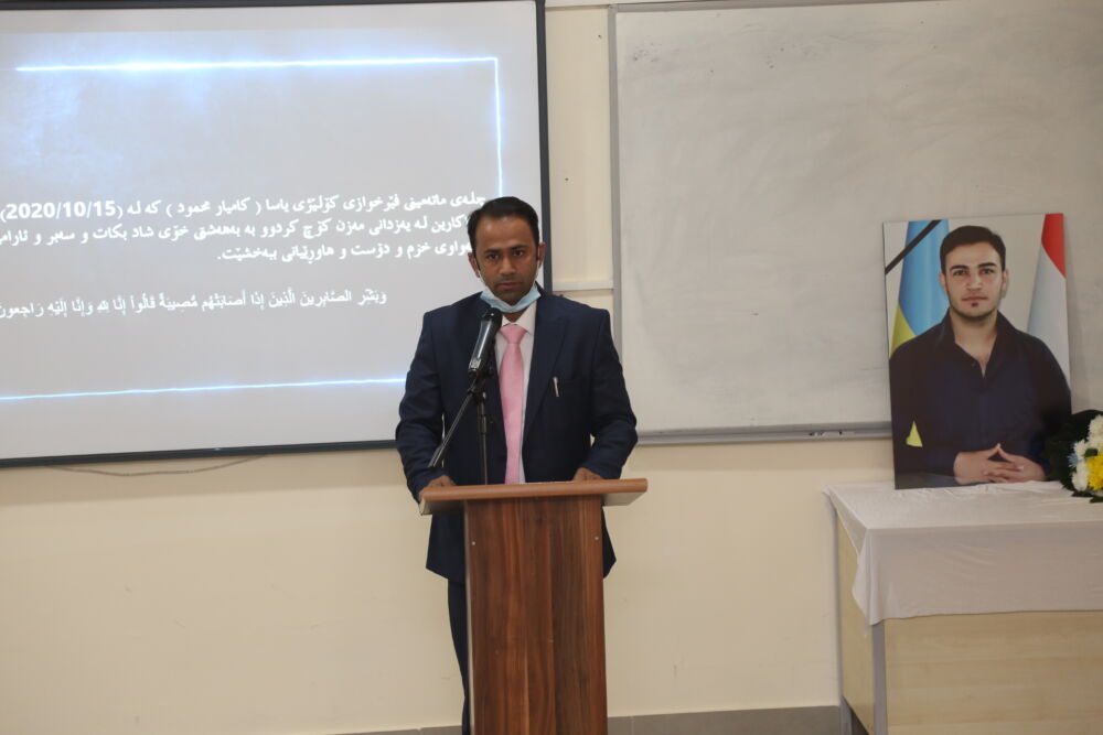 A short biography of Kamiar was shown. His gentleness, hardworking, and kindness were the main characteristic of Kamiar. Both Dr. Hussein Balisani, Dean of law faculty, and Mr. Ako Sabah, Head of the law department presented a speech.