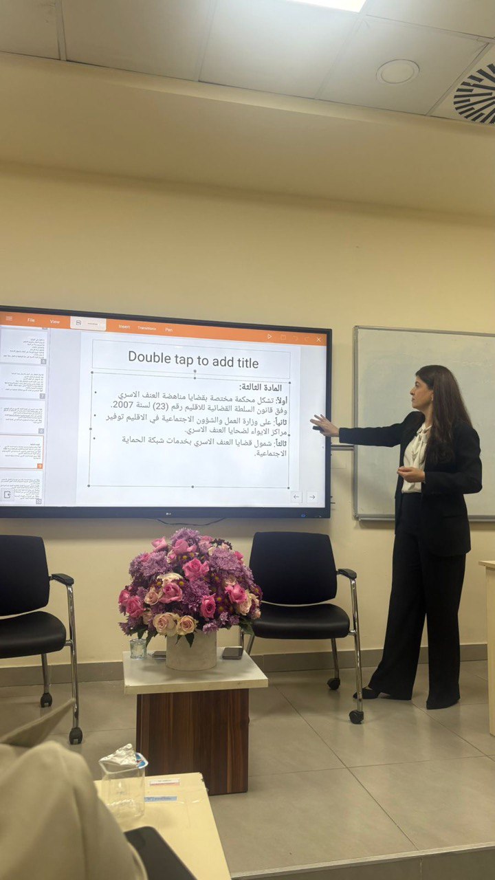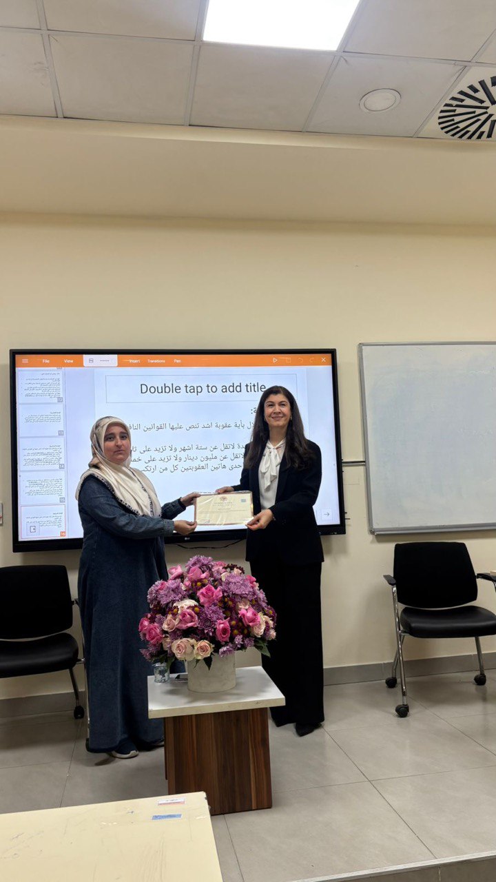 The workshop aimed to highlight the legislative framework related to protecting women from various forms of violence and to enhance the legal awareness of female staff regarding national and international mechanisms that support women’s rights. The workshop was designated exclusively for female employees and was attended by several faculty members and staff from different university departments.