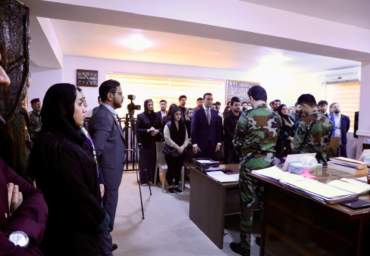 The visit aimed to strengthen students’ practical understanding of the military justice system, particularly the procedures of litigation and the mechanisms governing the progress of cases before the Military Court. Students were given the opportunity to observe firsthand how the court operates and to learn about its procedural and organizational aspects. The visit was supervised by Dr. Mohammed Abdul Karim and Mr. Abdullah Shakhawan.