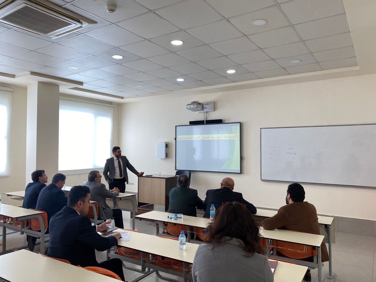 Held in Hall 437, the seminar was attended by Asst. Prof. Dr. Hussien Balisani, Dean of Faculty, Sabah Qasim, Head of the Department, and other staff members. During the session, Mr. Ashraf clarified the definition of the civil right to privacy in light of Iraqi laws, the Universal Declaration of Human Rights, and relevant judicial decisions. He also addressed the changes and developments in this area and the necessary amendments to the laws currently in force in Iraq.