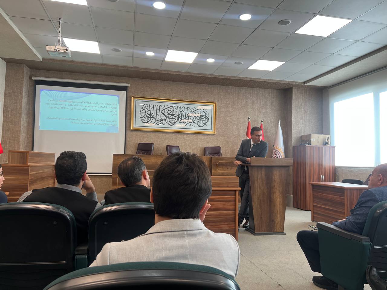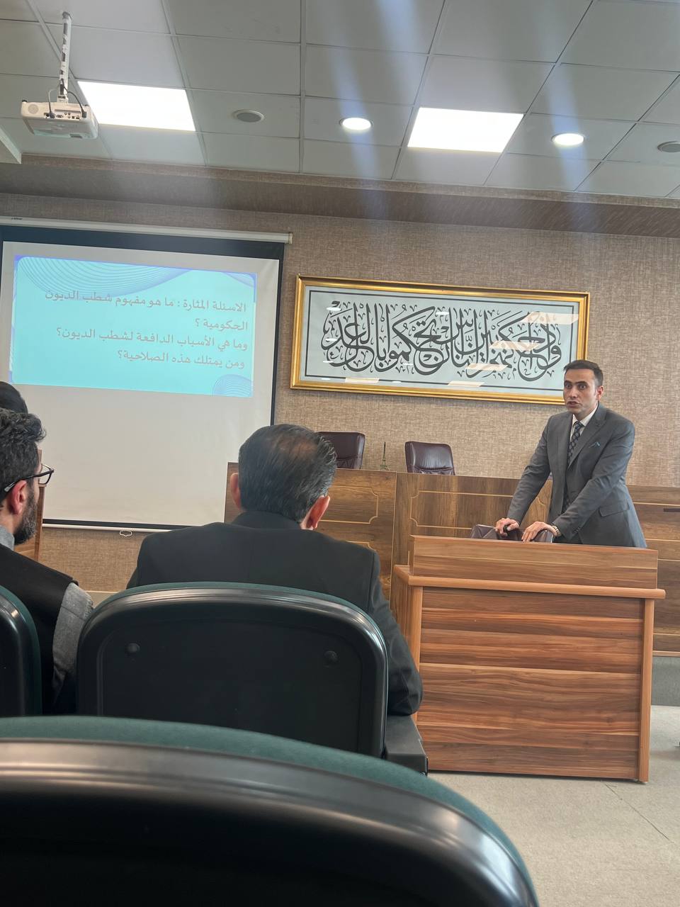 Held in Hall 437, the seminar was attended by Asst. Prof. Dr. Hussien Balisani, Dean of Faculty, Sabah Qasim, Head of the Department, and other staff members. During the session, Dr. Abdulkareem clarified the mechanisms for reducing government debt in the Kurdistan Region and discussed recent changes in this area. He also addressed necessary amendments to existing laws in Iraq to prevent future debt increases.